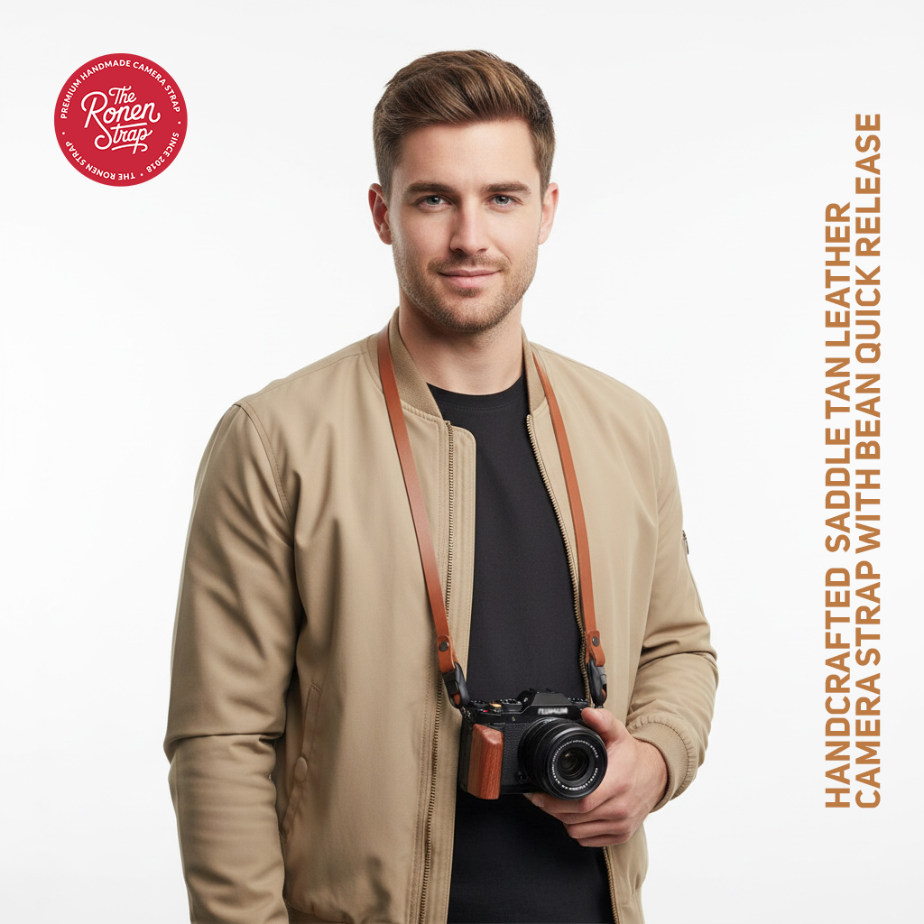 PREMIUM HANDCRAFTED LEATHER CAMERA STRAP WITH QUICK RELEASE BUCKLE – SADDLE TAN